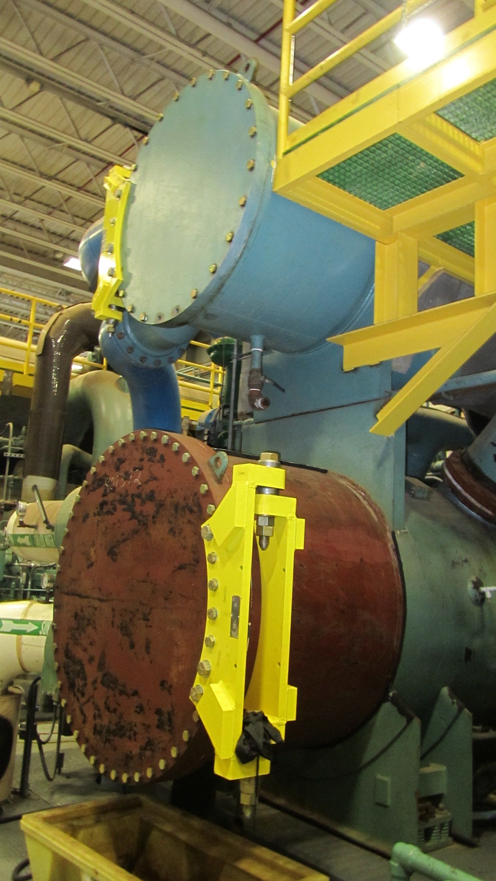 The Bolt-On Hinge™ is the safest , most efficient, cost effective bolted-on hinged solution allowing for easy opening and closing of access covers on HVAC Chillers, Condensers, Heat Exchangers, Manways, Storage Tanks, Blind Flanges and more.